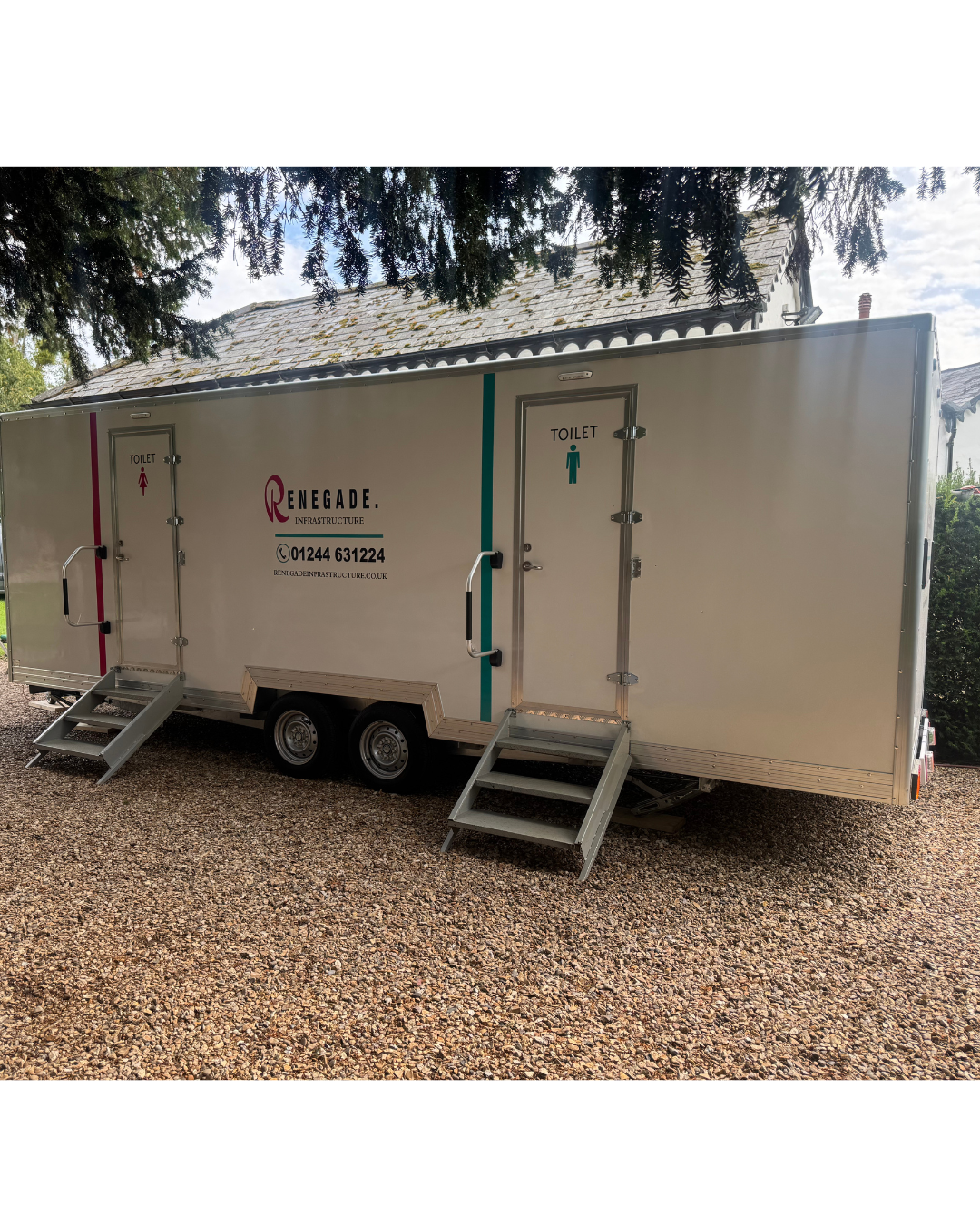 The TRG Infrastructure 4+2 Luxury Toilet Trailer delivers premium on-site welfare for film, television, and live event productions. Designed with comfort and efficiency in mind, this unit provides a high-end experience suitable for talent, crew, and VIP guests.